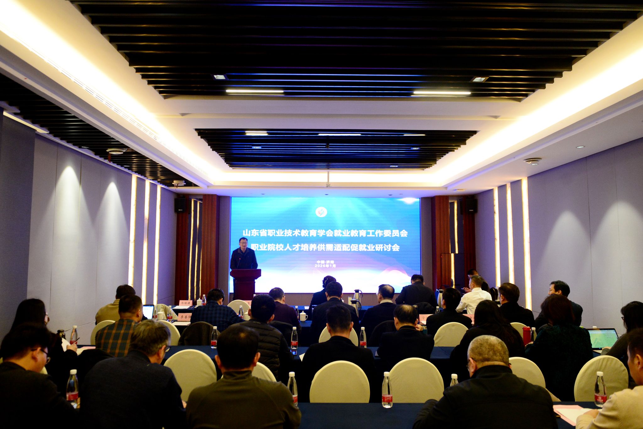 2026年1月19日,由山东省教育厅指导、山东省职业技术教育学会主办、山东省职业技术教育学会就业教育工作委员会承办的山东省职业院校人才培养供需适配促就业研讨会,在济南学府大酒店顺利落幕。此次研讨会紧扣职业院校人才培养与就业市场需求衔接核心,汇聚多方力量为山东职业院校毕业生就业工作把脉定向,山东省教育厅高校学生处处长梁立波,山东省职业技术教育学会会长石忠,高校毕业生就业协会学术委员会委员、核心能力分会秘书长许湘岳,以及相关院校代表出席活动,会议由承办院校院长郭培谦主持。